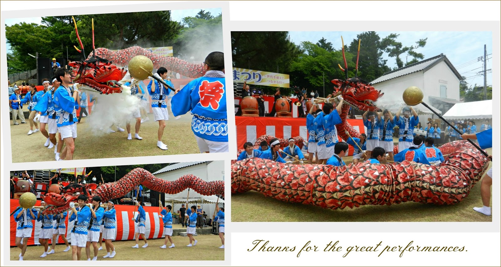 Let me introduce the high light of the festival; 3 Portable Shrines and the Dance of the Dragon , which is the trade mark of the company.